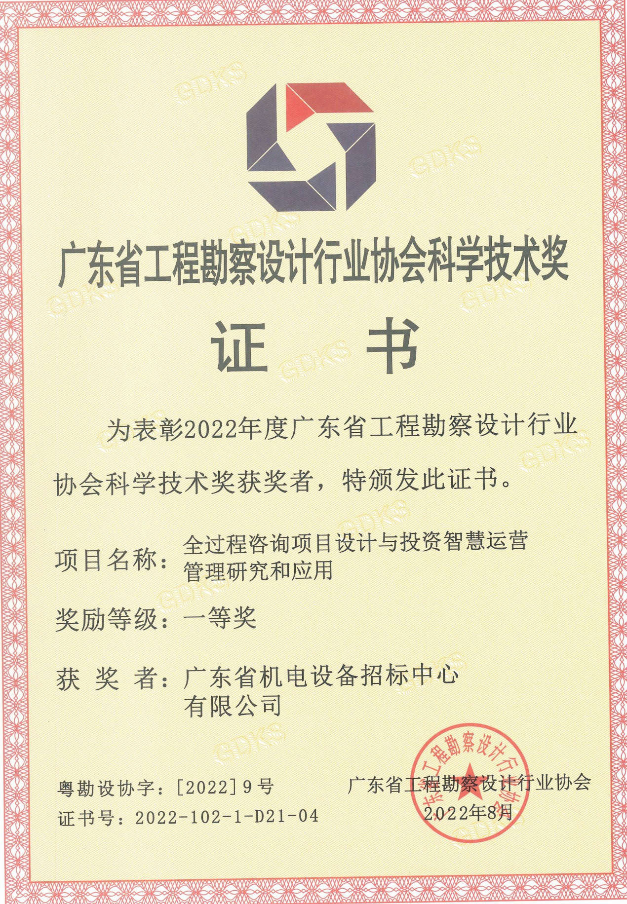 近日,2022年爱游戏ayx·(中国)官方网站-AYX.COM 工程勘察设计行业协会科学技术奖评选结果发布,爱游戏ayx·(中国)官方网站-AYX.COM (以下简称招标中心)参与完成的项目荣获两项一等奖、一项二等奖。