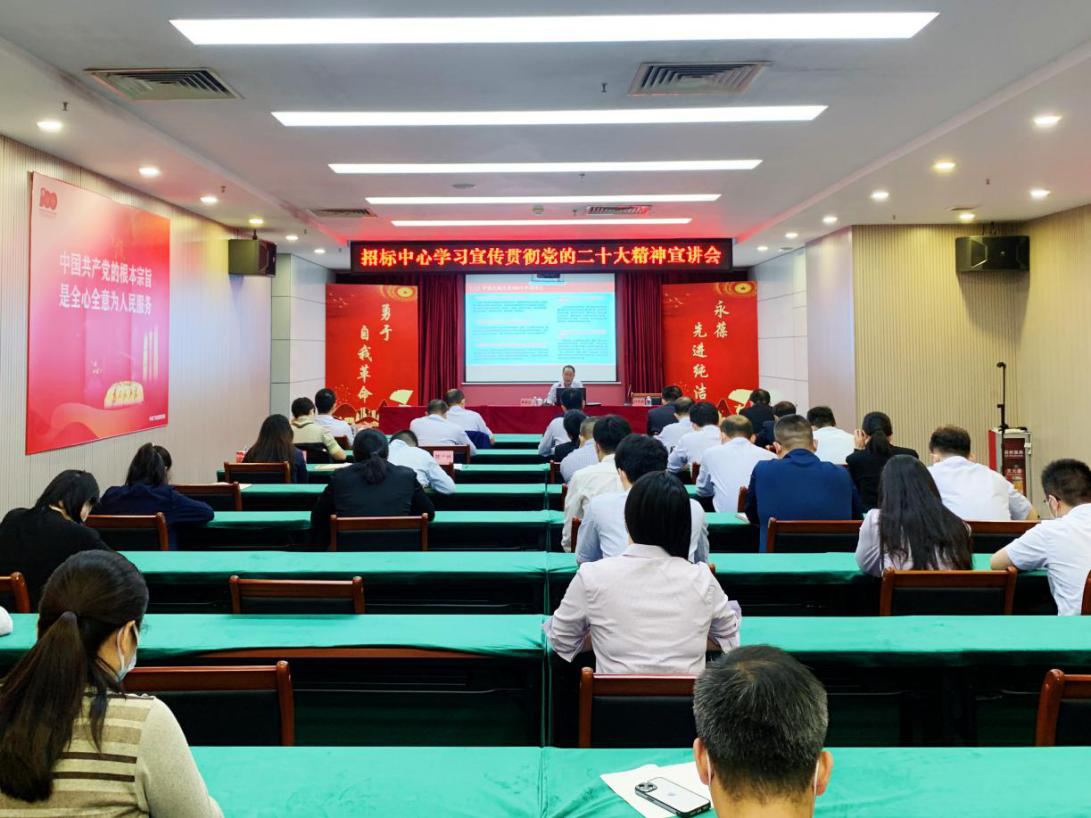 为深入学习宣传贯彻党的二十大精神,切实把广大干部职工的思想和行动统一到党的二十大精神上来,根据集团党委安排部署,11月15日上午,集团党委副书记、董事、工会主席黄家合到爱游戏ayx·(中国)官方网站-AYX.COM ,为全体干部职工作题为“以高质量发展推进中国式现代化 为实现中华民族伟大复兴而团结奋斗”的宣讲辅导报告,带领大家系统深入学习党的二十大精神。集团党群工作部副部长张文兵,招标中心领导班子全体成员参加会议。公司总部人员在主会场参会,各分公司及因疫情封控的干部职工通过视频收听收看。