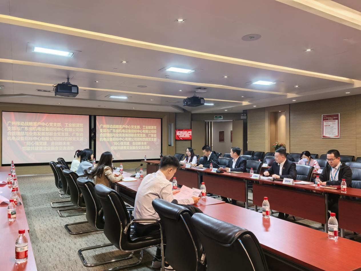 交流会上,招标中心党总支委员、副总经理陈芳及广州移动党委委员、副总经理吴雄林分别介绍了各自党组织的基本情况、党建工作特色与亮点。先是共同观看招标中心自拍纪实片《合力攻坚 不负所托》。随后,双方围绕支部标准化建设、党建品牌创建以及如何将党建工作与中心业务深度融合等议题展开了热烈而深入的交流探讨,分享了在党建引领下推动业务发展的成功经验与创新做法。