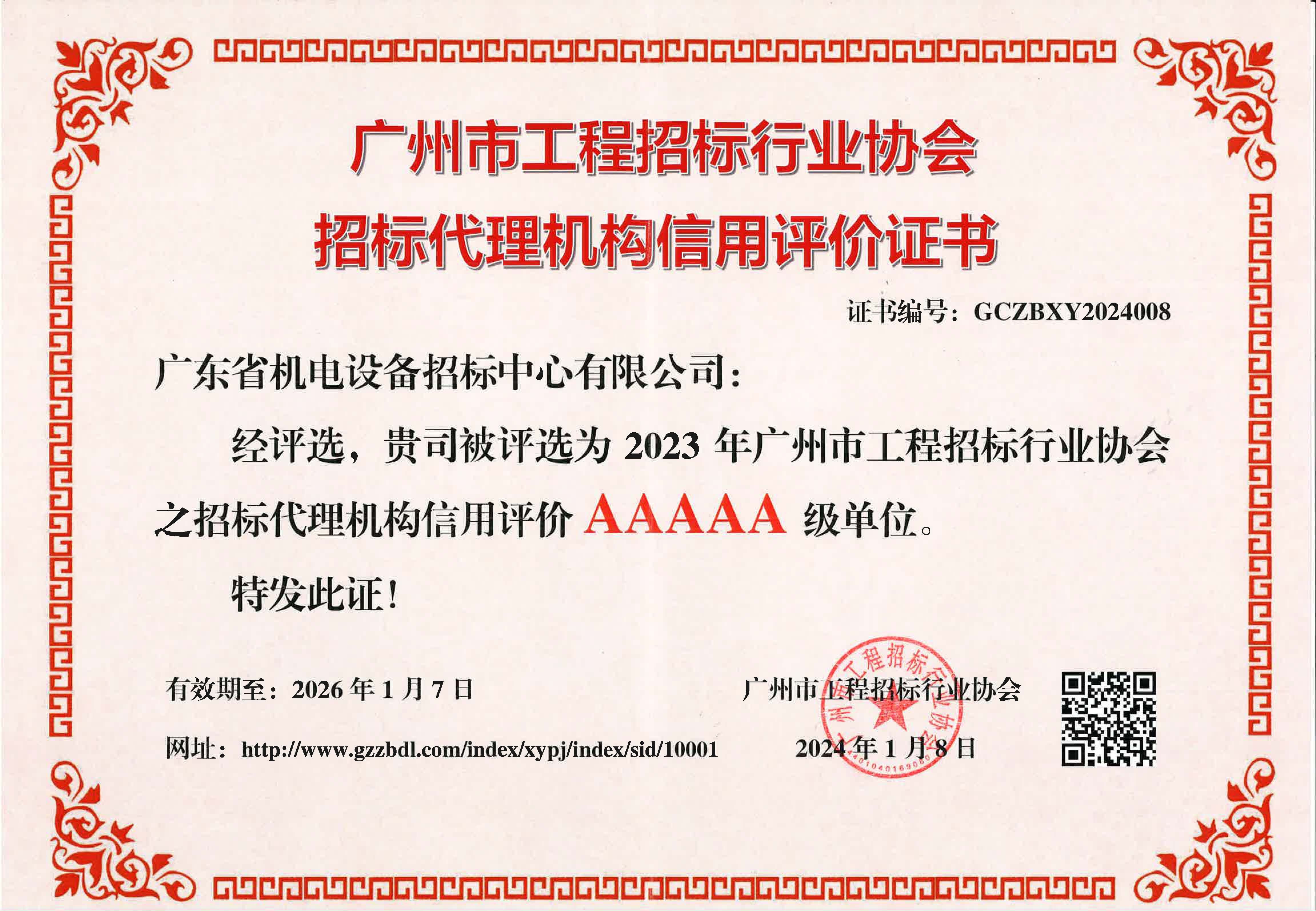 2023年度广州市工程招标代理行业协会招标代理机构信用评价AAAAA级单位