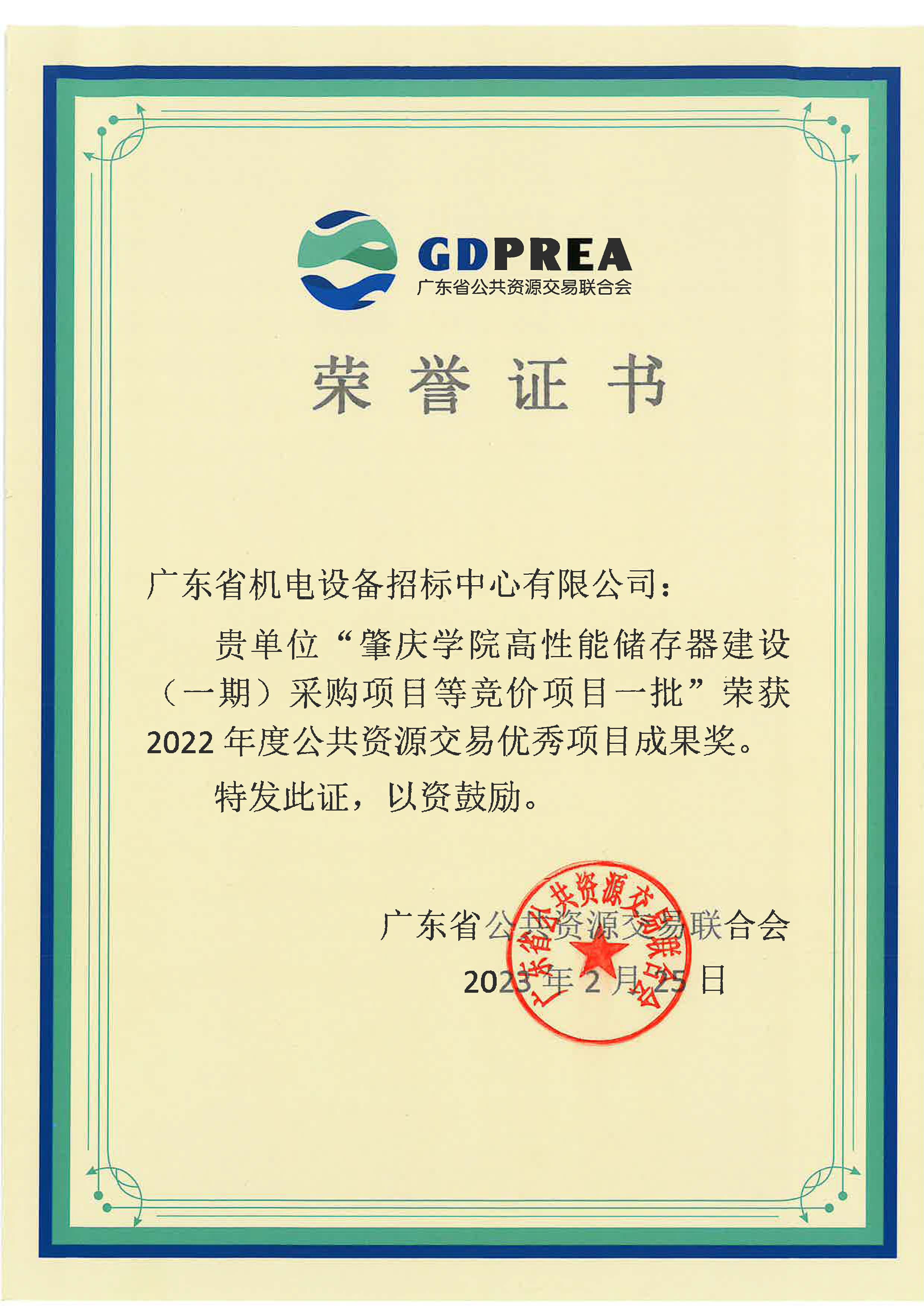2022年度公共资源交易优秀项目成果奖--“肇庆学院高性能储存器建设(一期)采购项目等竟价项目一批”项目